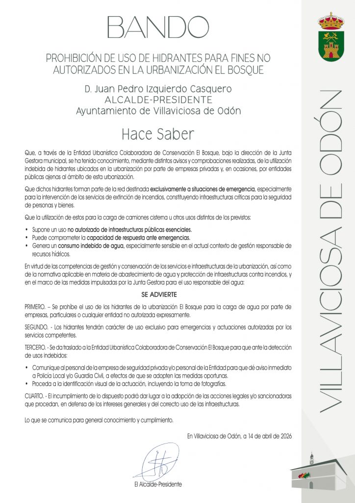 • BANDO: Prohibición uso hidrantes